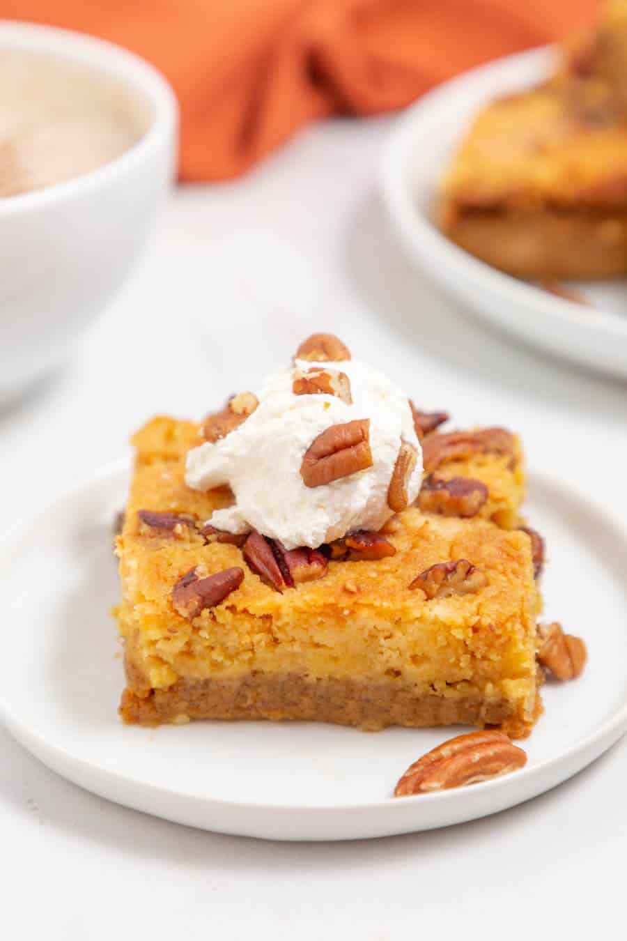 Pumpkin Dump Cake made with a cake mix, pumpkin puree, pumpkin pie spice, butter, and pecans. It's SO fast and easy and everyone LOVES it!