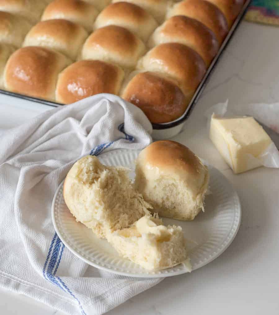 My mom has been making this homemade dinner rolls recipe for years and they’re absolutely divine. They make your house smell amazing and the recipe makes perfectly soft and fluffy jumbo dinner rolls. The dough is extra soft and tender thanks to the addition of butter, milk, and eggs! So tasty and perfect for your Thanksgiving or Christmas dinner table.