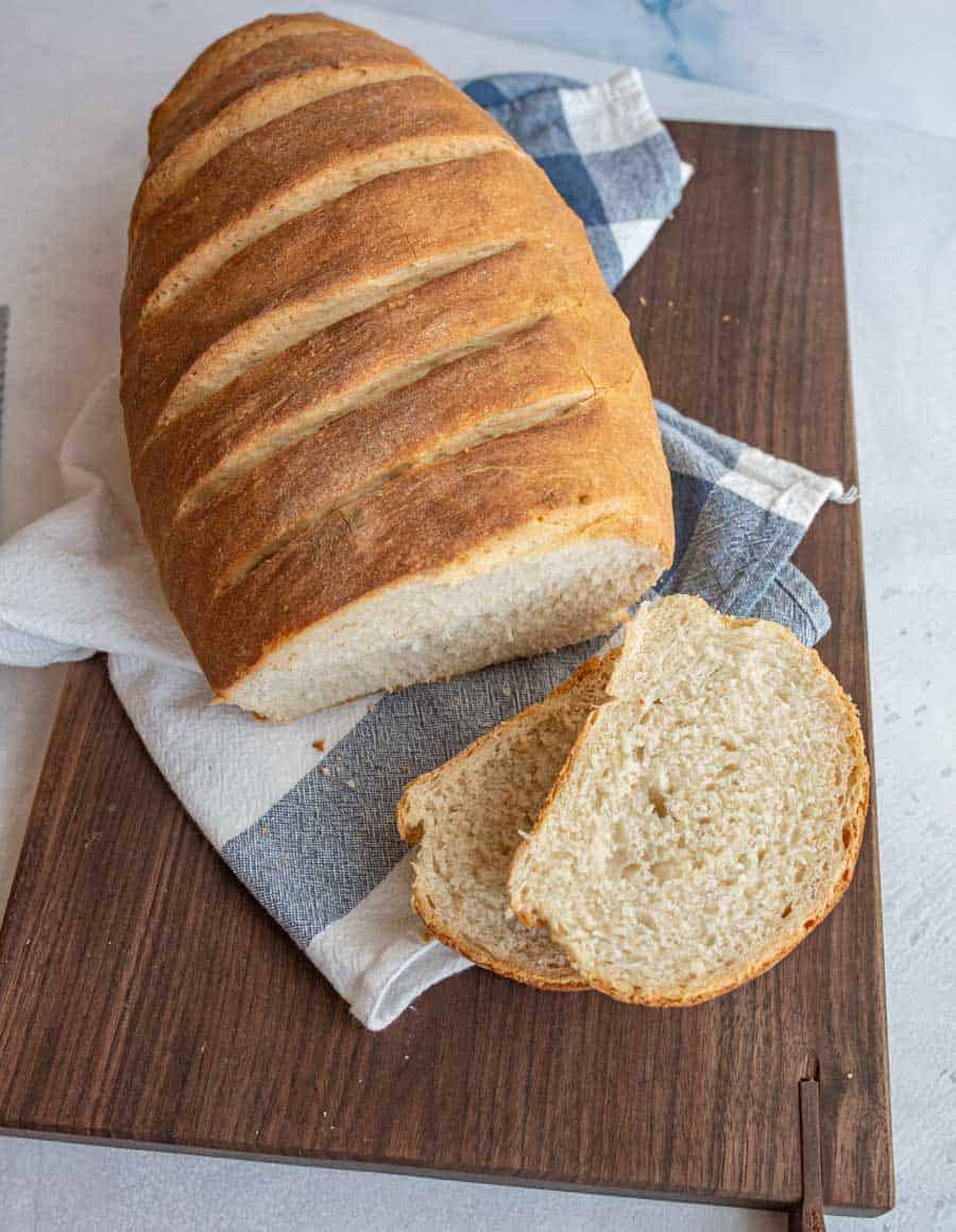 This easy Homemade Italian Bread needs only 4 simple ingredients. With its crusty exterior and fluffy interior, it’s the perfect side for soups, stews, and chilis!